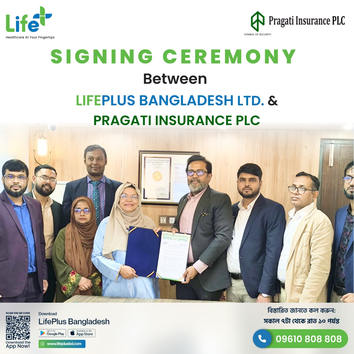 Pragati Insurance PLC has signed an agreement with LifePlus Bangladesh Limited by which the employees and their dependents and the policy owners of Pragati Insurance PLC will be able to avail Special Corporate Health services at a discounted rate and also will do related insurance policies with Pragati Insurance PLC. Ms. Papia Rahman ACII (UK), Deputy Managing Director of Pragati Insurance PLC and Mr. Sharif Md Abid, Chief Executive Officer of LifePlus Bangladesh Limited exchanged documents after signing the agreement. Both organizations Executives were present during the signing ceremony.